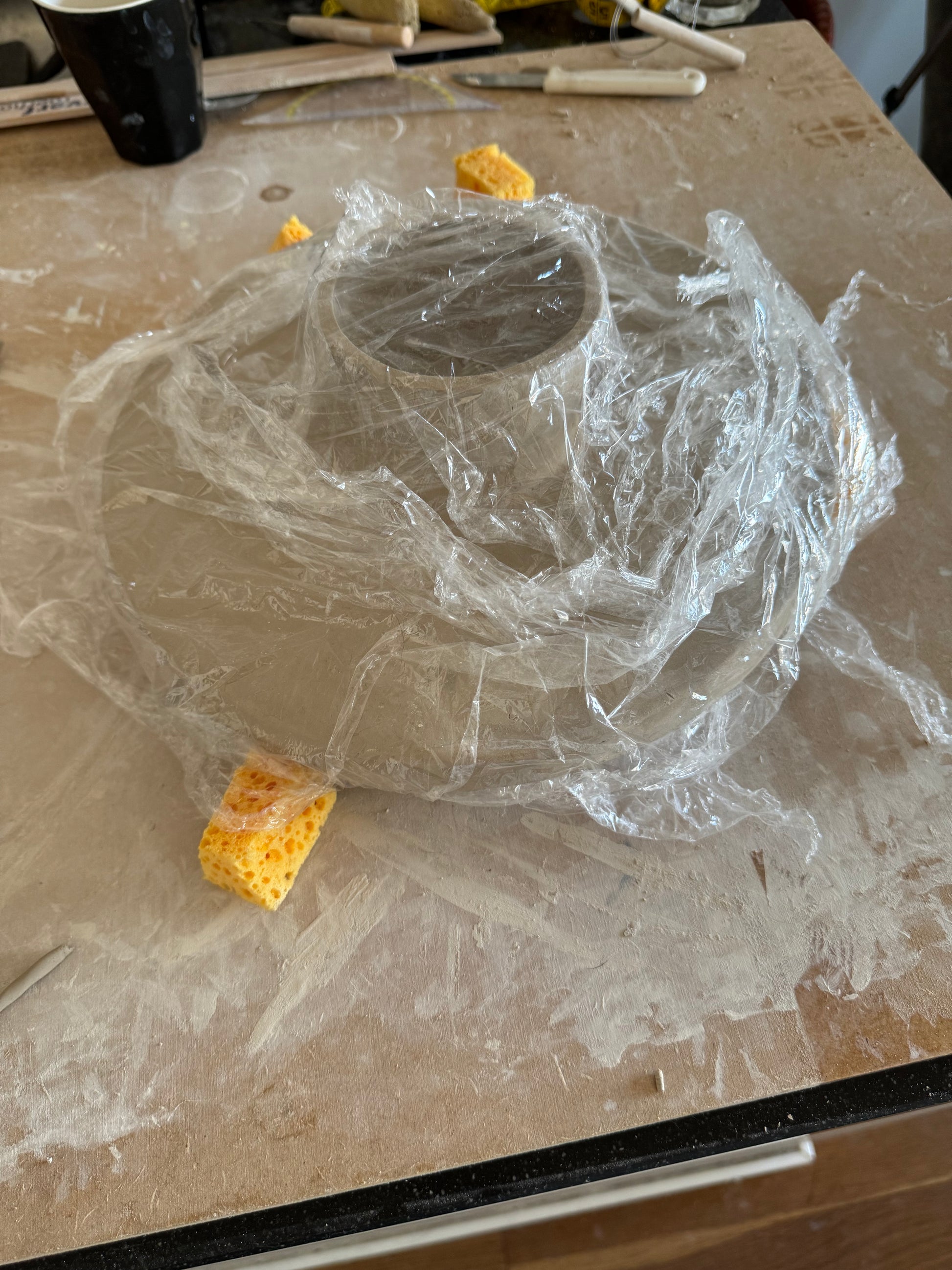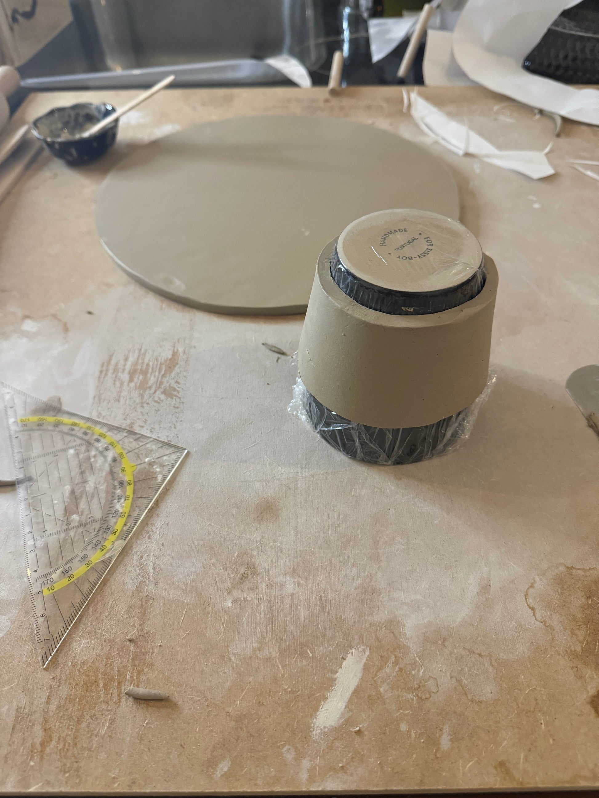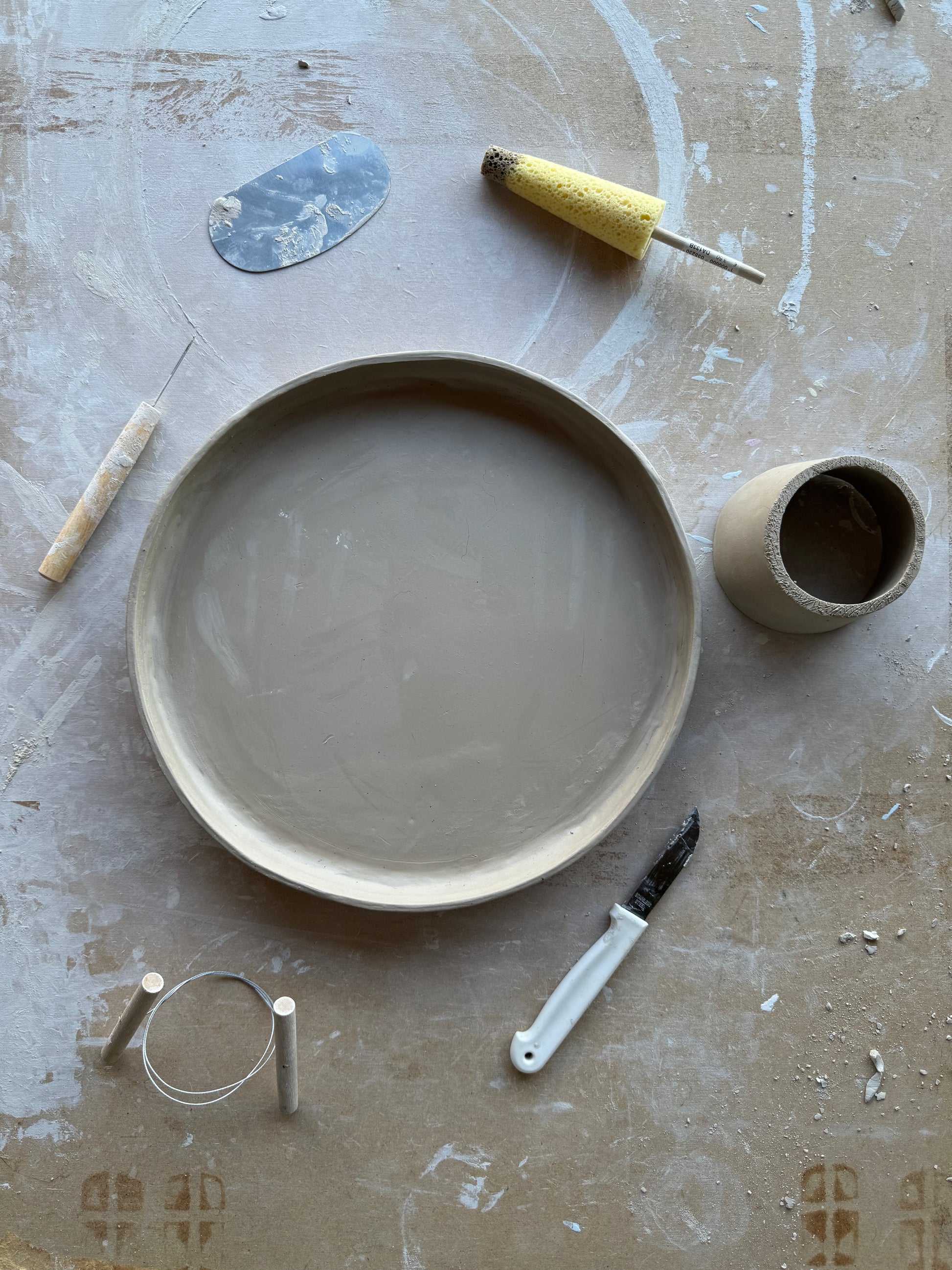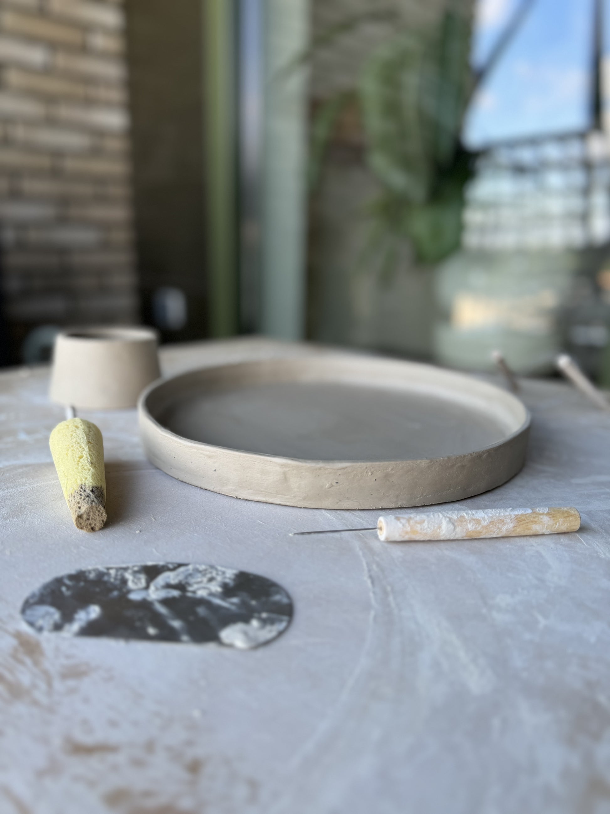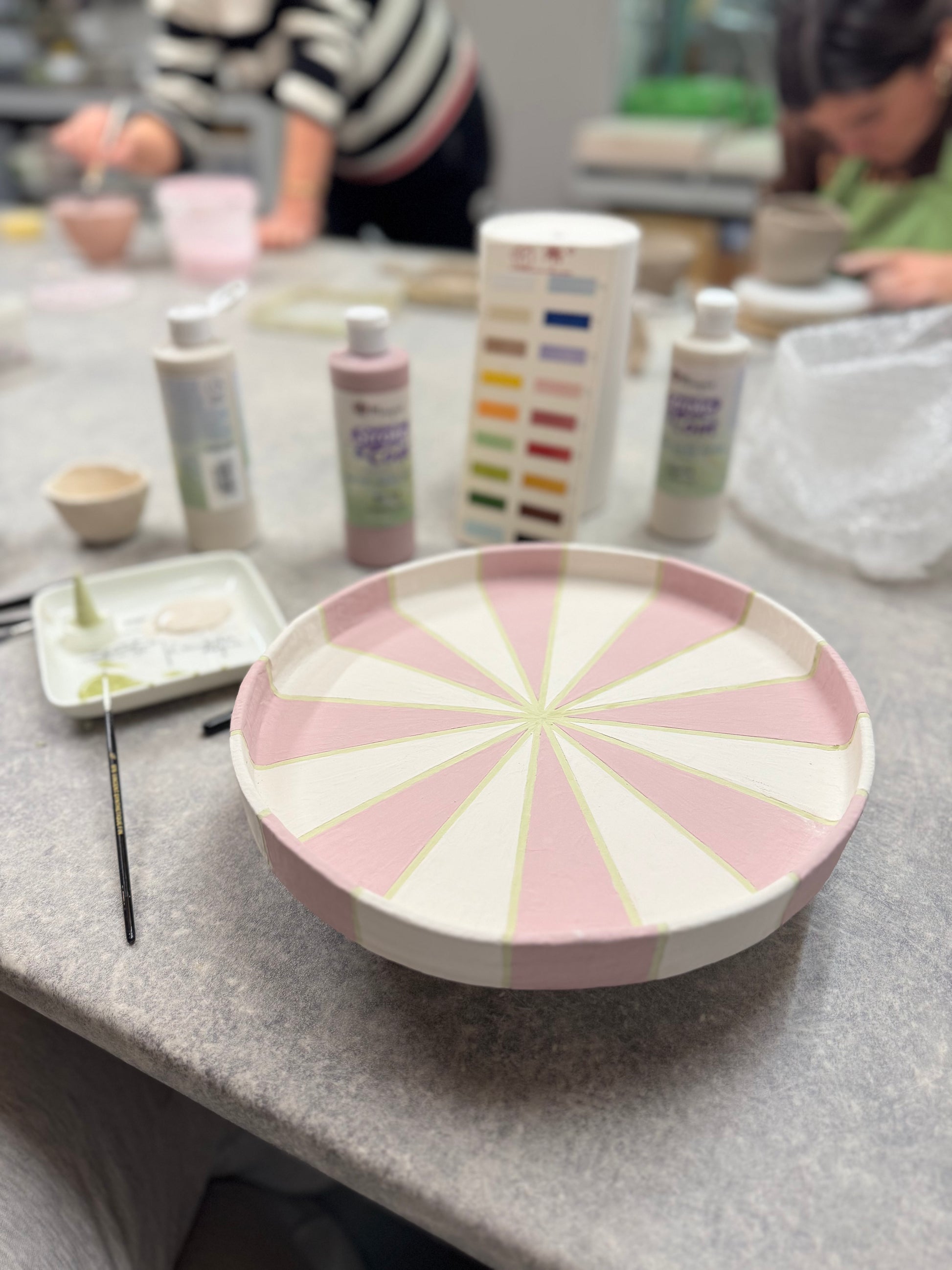 Dit unieke taartplateau is volledig met de hand opgebouwd uit klei en met zorg afgewerkt tot een echte blikvanger. Tijdens het maakproces is laag voor laag de vorm opgebouwd, waarna het plateau is geglazuurd in drie prachtige tinten die samen een vrolijk, feestelijk patroon vormen.